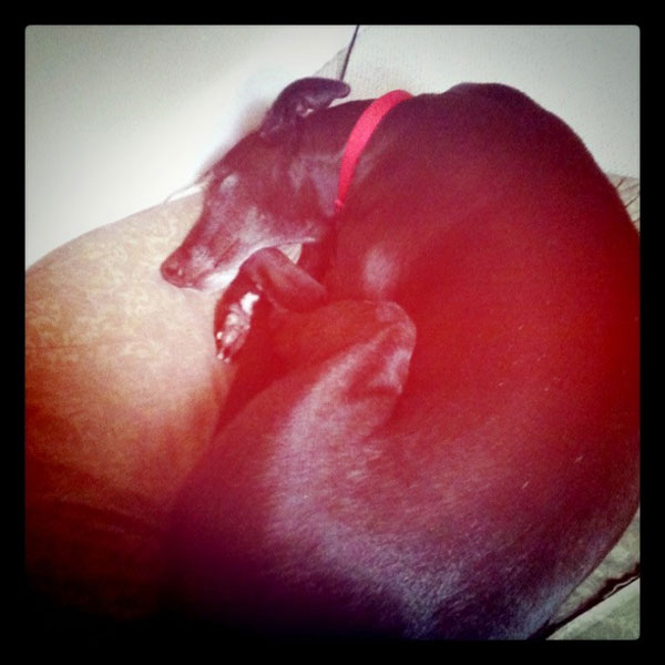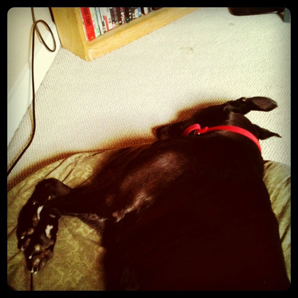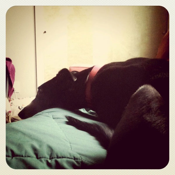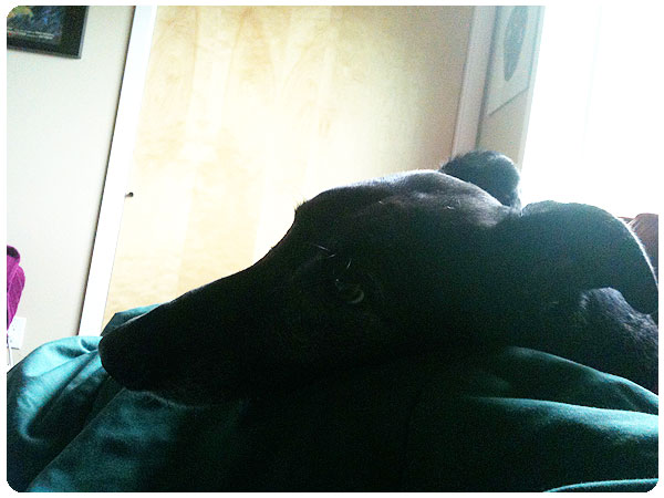 | Picard slept with me all night, and woke me up by jumping up on top of me! :) |