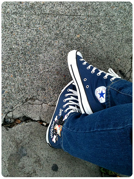 | Another second hand find; brand spankin' new Sailor Jerry Converse in my size! The jeans are also new (F21). |